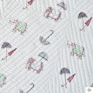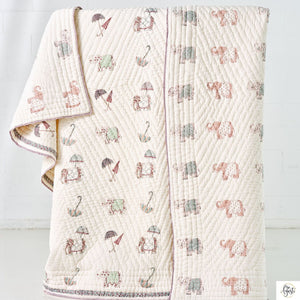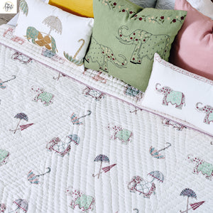 Size - 230W x 260L cm (approx. it might vary 1 or 2cms among quilts)Weight - 3kgs (approx.) Fabric - Unbleached 100% cotton that gets softer every dayFilling - Hand-fluffed, natural open cottonPrinting method - Hand block printed...