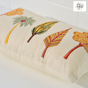 This gorgeous cushion cover displays the exquisite colours of autumn. Exotic flora comes alive as they are intricately embroidered on linen fabric. When placed in the home, autumn coloured flora are traditionally known to have a therapeutic effect on us.