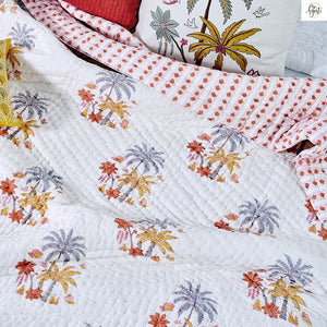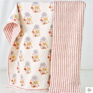This tropical-looking quilt is inspired by India’s beautiful tropics of the southern states. It doesn’t matter whether you’re in the Caribbean or Asia, the vibe of a tropical climate makes us all happy.