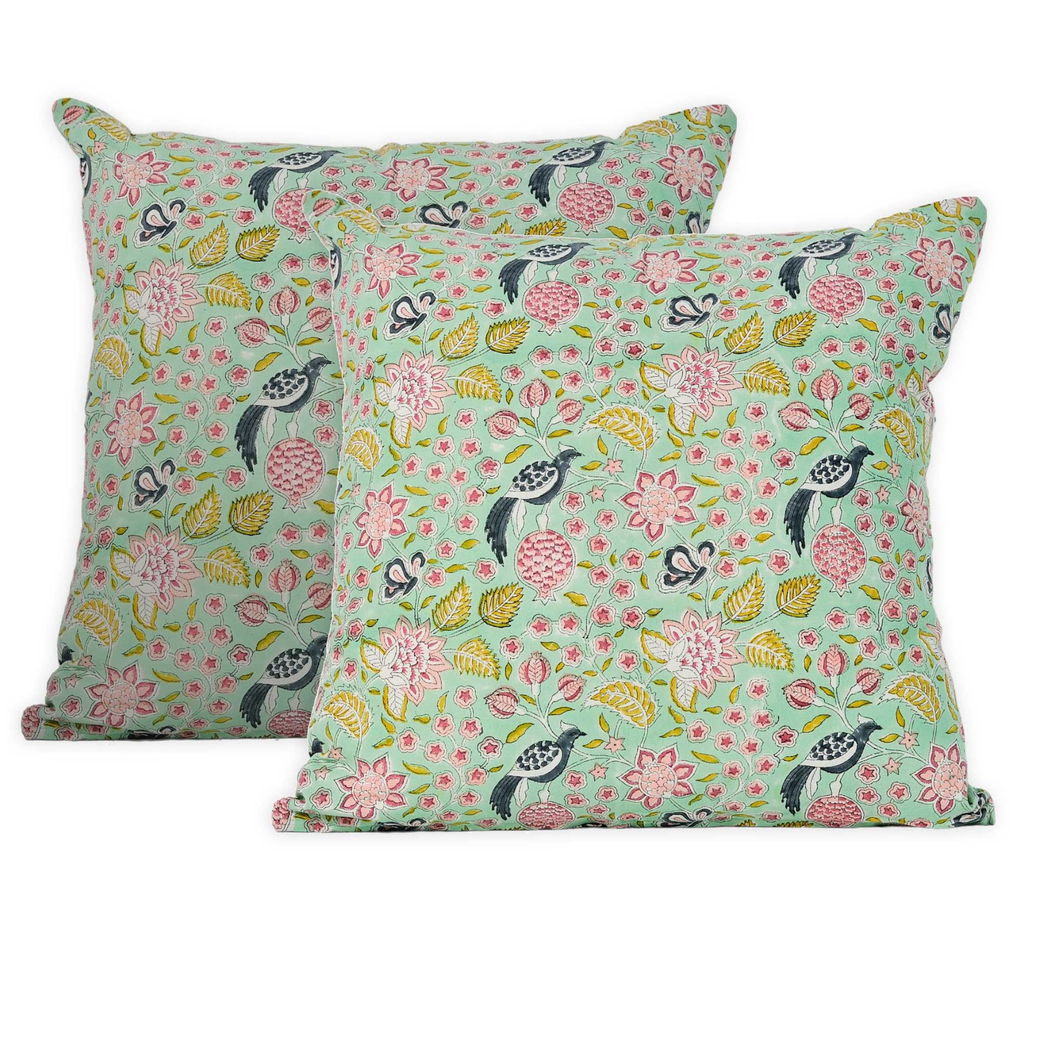 2 x Lemura handblock printed cushion covers 50x50cm.
