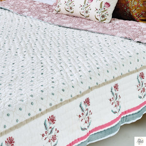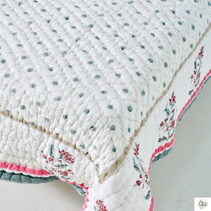 Our quilts are handcrafted using the traditional hand block printing technique. It takes many hours of devoted effort to design, mix the colours, print and quilt. Thus making each and every quilt unique and a work of art for your home.